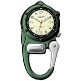 [if Compact and simple features make the Mini Clip Microlights sure-fire hits. This watch features a green alloy case, cream military dial, luminescent hands & markers, an integrated carabineer, powerful LED microlights and Miyota movement. Water resistant for up to 100 feet]